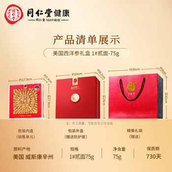 同仁堂品牌 北京同仁堂美国西洋参1#贰面75g花旗参送父母长辈礼盒