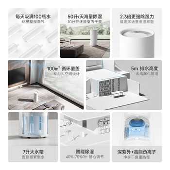 米家小米智能除湿机50L上排水家用客厅别墅地下室抽湿机除湿器干衣机干燥机DM-CS50