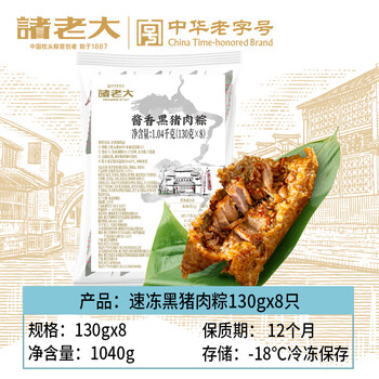 诸老大黑猪肉速冻粽子130g*8只共2.08斤中华老字号湖州特产生鲜早餐粽