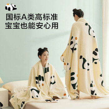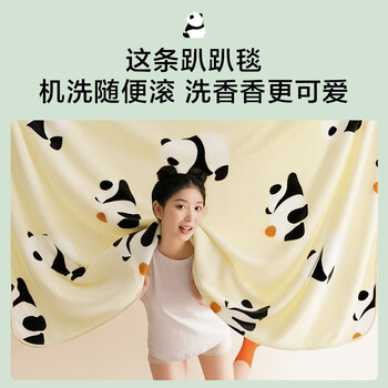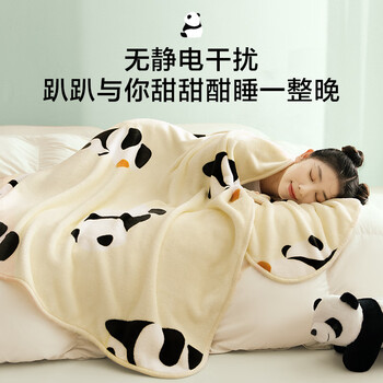 京东京造趴趴毯 810g法兰绒空调毯 可爱熊猫印花毯沙发午睡盖毯 1.5x2m