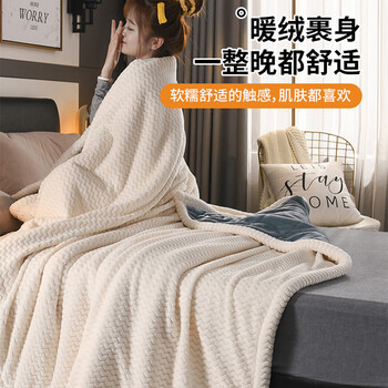 无印良品三层夹棉加厚毛毯 冬季保暖法兰绒毯子空调被毯沙发盖毯150*200cm