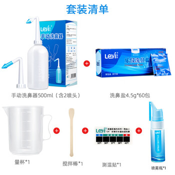 乐仪手动洗鼻器儿童成人鼻窦炎LY-M2鼻部冲洗器500ml生理盐水壶60包盐