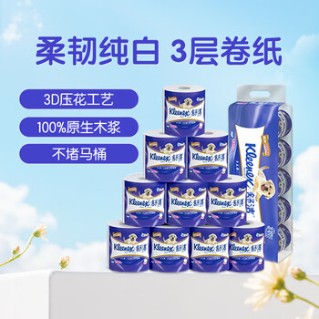 舒洁(Kleenex)舒洁卫生纸柔韧纯白印花有芯卷纸3层210节*10卷纸巾厕纸纸巾