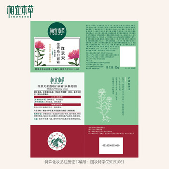 产品(注册/备案)名称 相宜本草红景天莹透幼白面霜(水润亮肤)