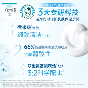 珂润(Curel)保湿洁面泡沫150ml 氨基酸洗面奶温和清洁敏感肌男女护肤京东自营