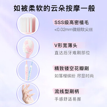 舒客宽头樱巧牙刷6支装V型宽薄刷头超软毛护龈成人牙刷新老随机