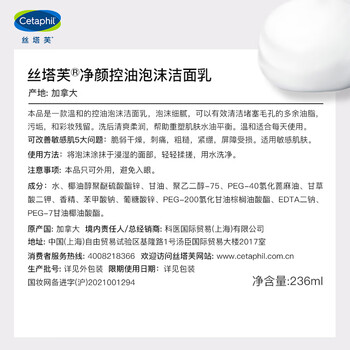 丝塔芙Cetaphil净颜控油泡沫洁面乳236ml×1