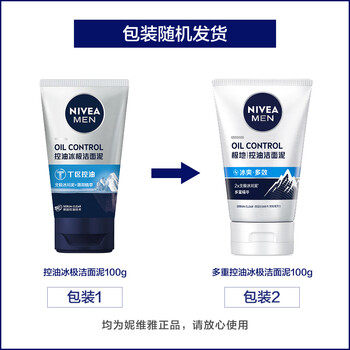NIVEA 妮维雅 男士控油冰极矿物炭洁面泥100g×1,NIVEA 妮维雅 男士控油冰极矿物炭洁面泥 50g×1(新老包装随机发货)
