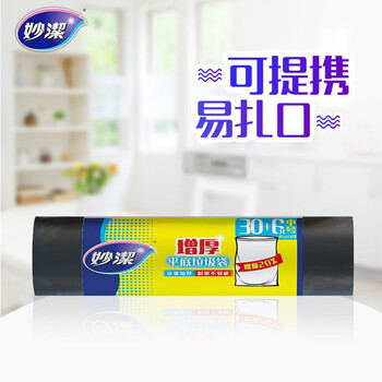 妙洁平口垃圾袋黑色45*50cm36只单面0.9丝点断式中号厨房用