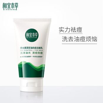 相宜本草男士黑茶控油抗痘洁面乳100g男士护肤洗面奶男士护肤品