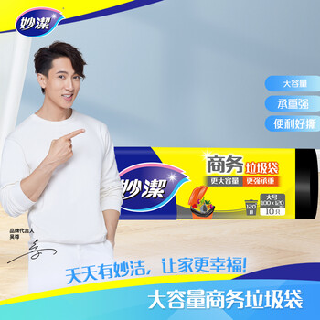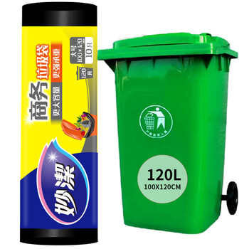 妙洁垃圾袋黑色100*120cm10只单面1.8丝点断式商务大号加厚物业超市