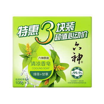 六神【家庭3块装】绿茶甘草香皂108g*3 (洗手洗脸皂 新老款随机发)