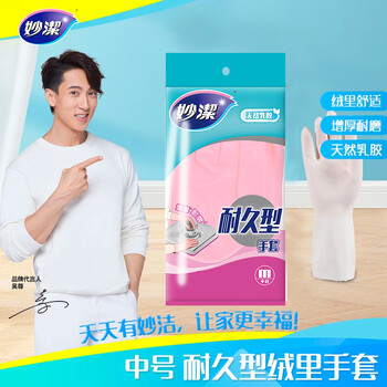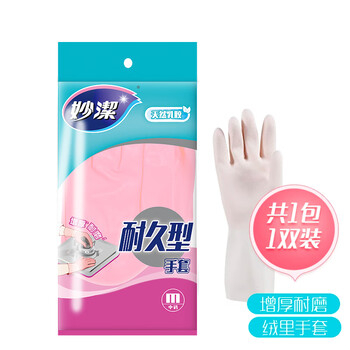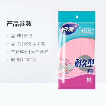 妙洁耐久型手套 天然橡胶 1双装 中号 清洁洗衣洗碗家务做饭手套