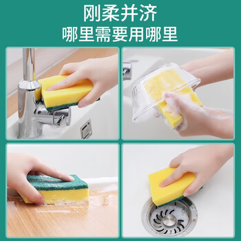 美丽雅抗菌洗碗海绵10*7*3cm*6片大块去油去污金刚砂百洁布厨房抹布神器