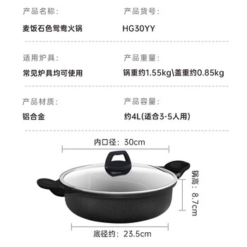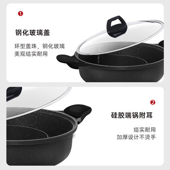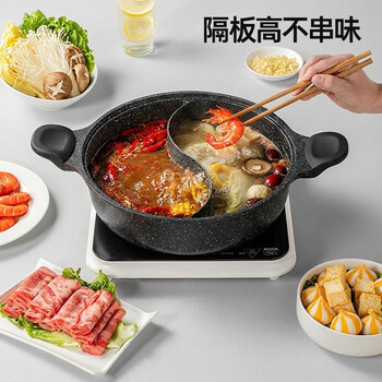 炊大皇火锅鸳鸯火锅易洁不粘锅平底锅麦饭石色30cm电磁炉通用HG30YY