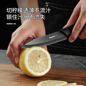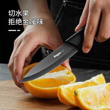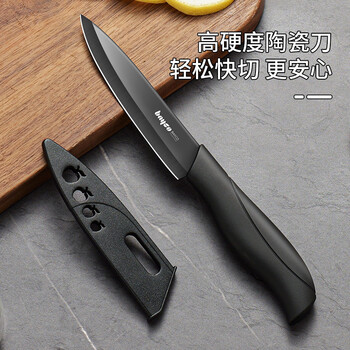 拜格(bayco)陶瓷刀4英寸家用黑刃水果刀削皮刀便携带刀鞘瓜果刀无需磨刀BD014
