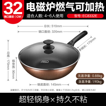 爱仕达(ASD)炒锅不粘锅少油烟平底炒菜锅家用不沾锅32cm燃气电磁炉通用EC