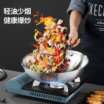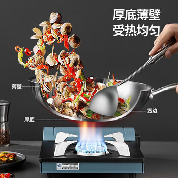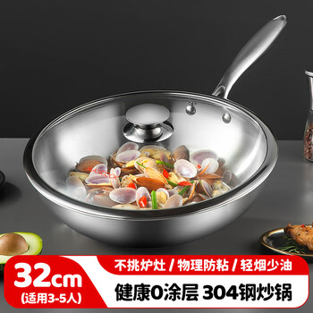 美厨(maxcook)304不锈钢炒锅 带盖锅具32cm三层钢锅 电磁炉燃气炉通用MCGU-YY32