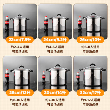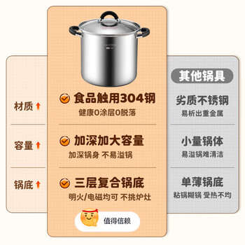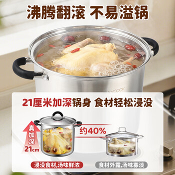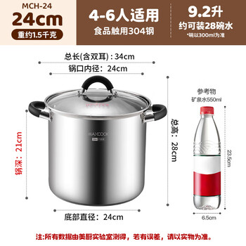美厨(maxcook)汤锅304不锈钢 复底高汤锅24cm 燃气炉电磁炉通用 MCH-24
