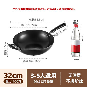 美厨(maxcook)铁锅炒锅 32cm无涂层老式炒菜锅精铁锅 燃气炉电磁炉通用MDB-32