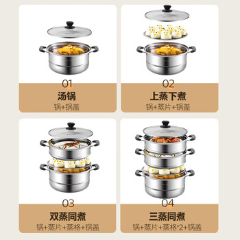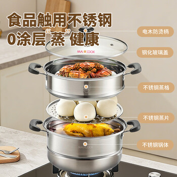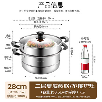 美厨(MAXCOOK)二层蒸锅 28cm不锈钢蒸锅复底可蒸可煮 燃气灶电磁炉通用