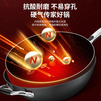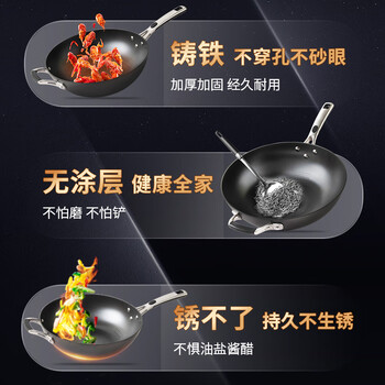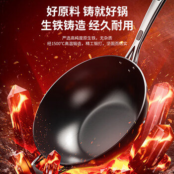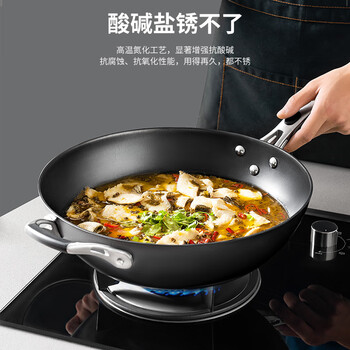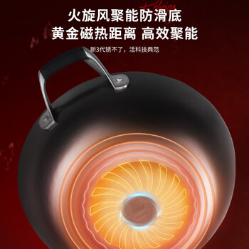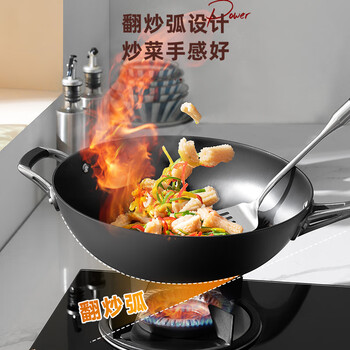 爱仕达(ASD)炒锅铸铁锅不锈无涂层旋风底炒菜锅32cm燃气电磁炉通用CF32Z1WG