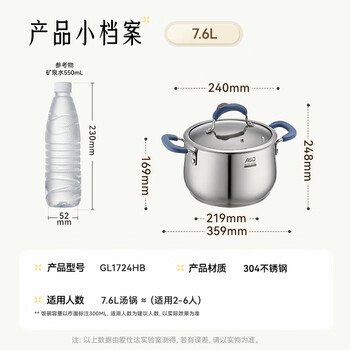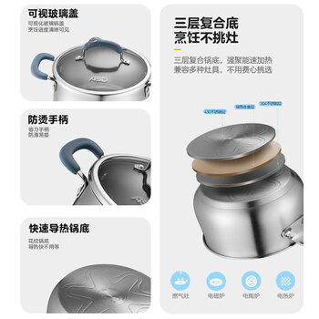爱仕达(ASD)汤锅 304不锈钢蒸锅炖煮锅 C味黛丽舍24CM燃气电磁炉通用GL1724HB