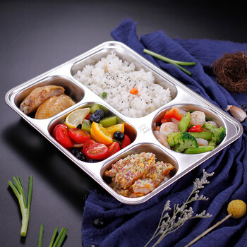 金钥匙(GOLDEN KEY)304不锈钢 快餐盘加厚分格成人全钢餐盒饭盒 五格带盖GK-510KC