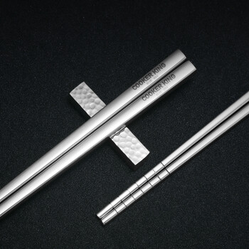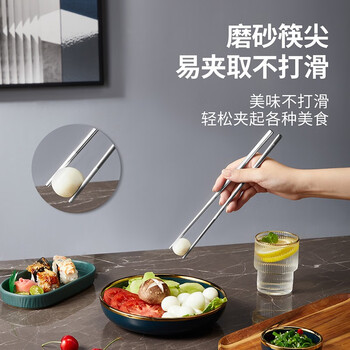 炊大皇 304不锈钢筷子 家用防滑方形筷子中空心防烫酒店加长5双套装