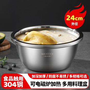 美厨(maxcook)304不锈钢盆调料盆 加厚味斗24CM 洗菜盆沙拉盆和面盆MCWA007-24