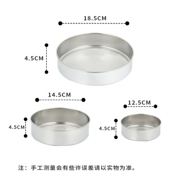拜杰面粉筛 不锈钢单层超细糖粉筛子细箩11/15/18cm三件套烘焙工具