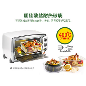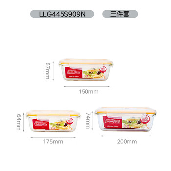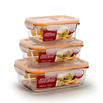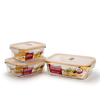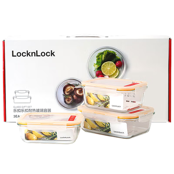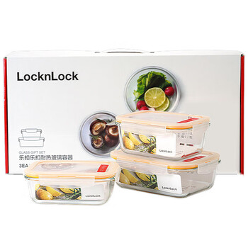 乐扣乐扣(LOCK&LOCK)耐热玻璃套装保鲜盒三件套(380ml+630ml+1000ml)LLG445S909