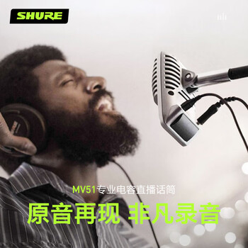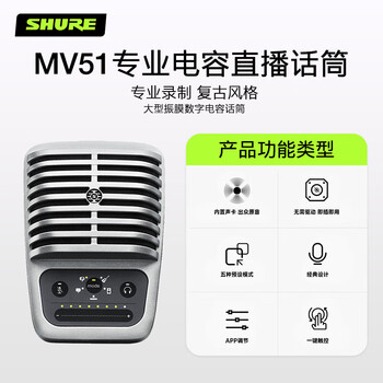 SHURE舒尔MV51大型振膜电容麦克风 电台录音视频制作可返听有声小说直播唱歌录制会议麦克风话筒
