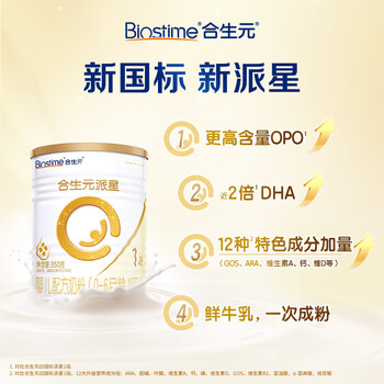 合生元(BIOSTIME)派星婴儿配方奶粉 1段(0-6个月) 350克 新国标