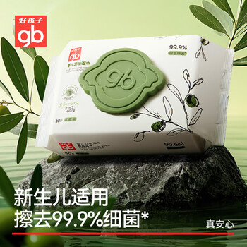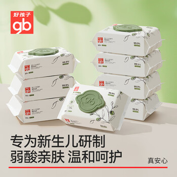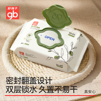 好孩子(gb)婴儿卫生湿巾 橄榄滋养湿巾80抽*8包 新生儿湿纸巾