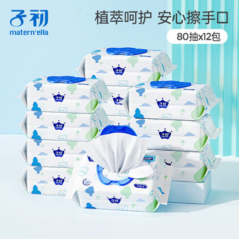 子初婴儿湿纸巾 宝宝手口柔湿巾 儿童擦脸绵柔湿巾80抽12包