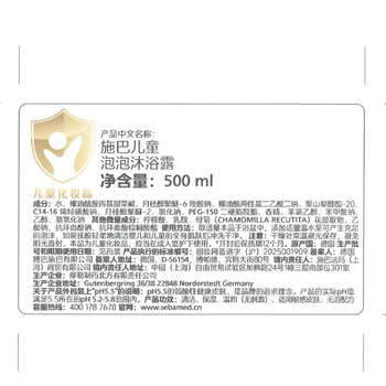 施巴(Sebamed)儿童泡泡沐浴露婴儿宝宝沐浴液3-6-12岁洗护500ml德国原装进口