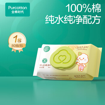 全棉时代婴儿湿巾新生儿湿纸巾100%纯棉成人可用80抽*1包