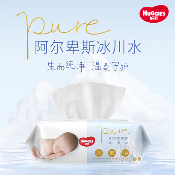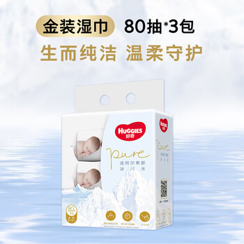 好奇(Huggies)金装婴儿湿巾80抽3包阿尔卑斯冰川水婴童手口可用去油污消毒