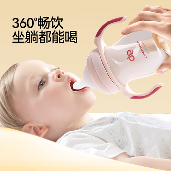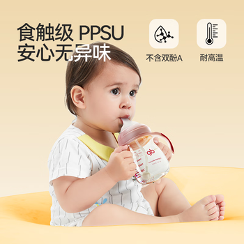 好孩子(gb)PPSU婴儿奶瓶宽口径奶瓶带手柄吸管小饿魔系列240ml蓝色 6个月+