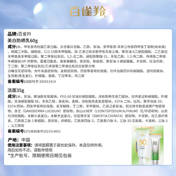 百雀羚(PECHOIN)草本美白防晒套装SPF50++60g防晒买一送一生日礼物