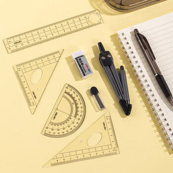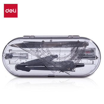得力(deli)铅笔+铅芯+橡皮+圆规+尺子/三角尺+量角器学生开学文具中考高考绘图用品8件套 /9591A