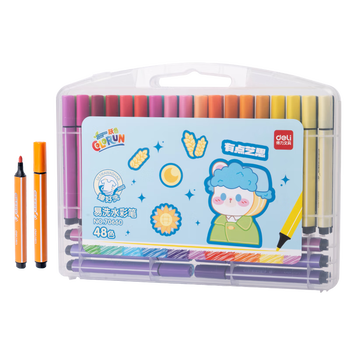 得力(deli)易可洗48色水彩笔学生三角杆儿童美术画画绘画勾线马克笔粗三角杆易握水彩笔