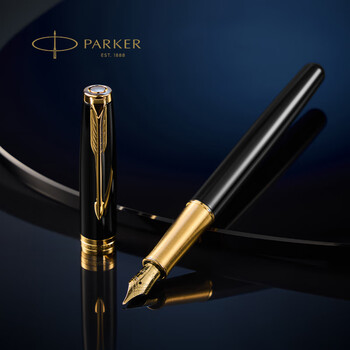 派克(PARKER)高端钢笔 马年礼盒送礼生日礼物礼品18K金笔尖 卓尔丽雅黑金墨水笔+木制礼盒