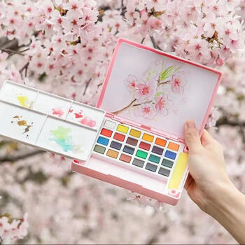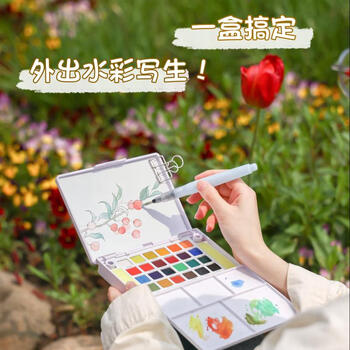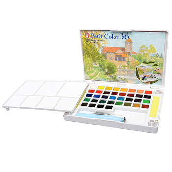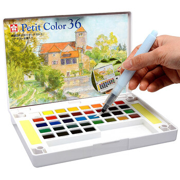 樱花(SAKURA)固体水彩颜料36色套装礼盒便携透明水彩写生学生绘画用品出游礼物礼盒速写马克笔绘画