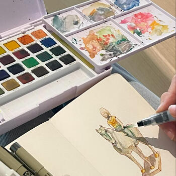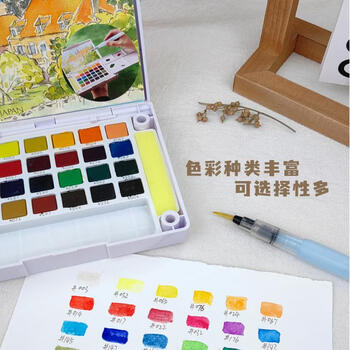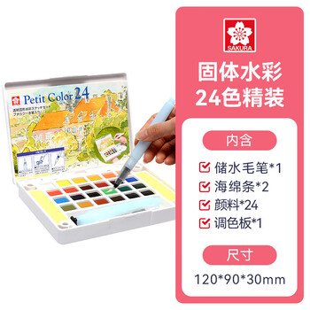 樱花(SAKURA)固体水彩颜料24色套装便携透明水彩艺考写生学生绘画用品速写马克笔绘画