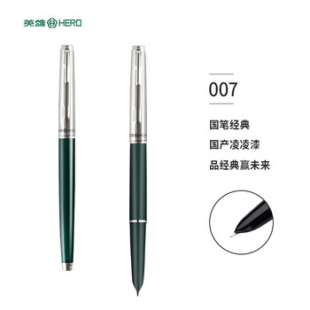 英雄(HERO) 钢笔经典007 黑色暗尖铱金钢笔墨水笔学生单支装 F尖