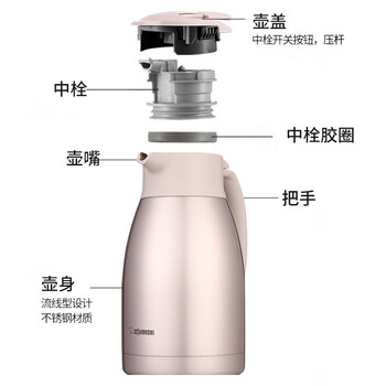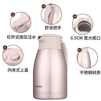 象印保温壶304不锈钢真空热水瓶居家办公大容量咖啡壶SH-HJ15C-PF