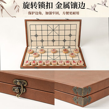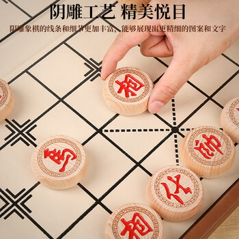 妙记象棋中国象棋实木象棋榉木皮革棋盘一体特大号象棋60号8026