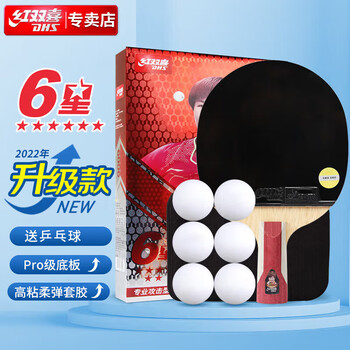 红双喜DHS狂飚直拍双面反胶弧圈结合快攻6星H6006(附拍套,单块装)